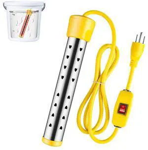 Immersion Water Heater Electric, 1500W Bucket Heater with 304 Stainless Steel, Automatic Power Off, Fast Heating Submersible Water Heater for Bucket Bathtubs and Basin, Yellow