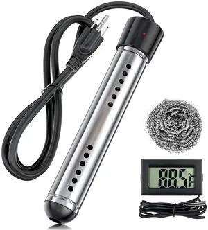 1500W Immersion Water Heater Electric, Portable Water Heater, Fast Heating, Bucket Heater with Digital Thermometer for Bathtub, Inflatable Pool, Camping, or Outdoor