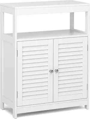 Costway Bathroom Floor Cabinet Free Standing Storage Organizer w/ Double Shutter Doors