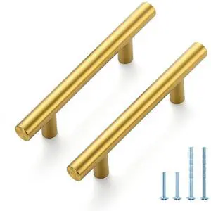 30 Pack 5 Inch Cabinet Pulls Kitchen Cabinet Handles with 3 Inch Hole Center Brushed Brass Cabinet Hardware Stainless Steel Kitchen Drawer Pulls for Cabinets Cupboard, 76mm Hole Centers