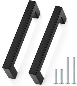 Cabinet Handles Stainless Steel Kitchen Drawer Pulls Square Bar Cabinet Hardware for Kitchen Bathroom Cupboard Dresser Black 5 Pack 4 Inch (102mm) Hole Center