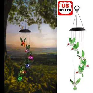 Solar Color Changing LED Hummingbird Wind Chimes Home Garden Decor Light Lamp US