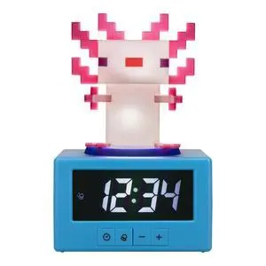 Minecraft Axolotl Digital Alarm Clock with Night Light Officially Licensed Gaming Decor, for Kids & Teens Bedrooms, Game Rooms, Minecraft Fans