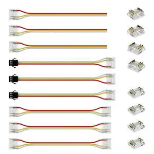 12mm 3-Pin Connectors for RGB Smart IC COB LED Strip Lights,Solderless Terminal Connection Kit,Dual-End Extension,Strip to Male Plug,Gapless,Strip to Wire Connectors,24V 12V 5V LED Light Strips