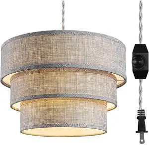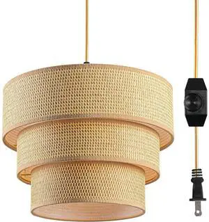Bobobigo Plug in Pendant Light, Hanging Lamp with Dimmable Switch, Rattan Pendant Light Fixtures with 15 Ft Cord, Lamp with Yellow Lamp Shade for Bedroom, Kitchen, Living Room,Buid not Include