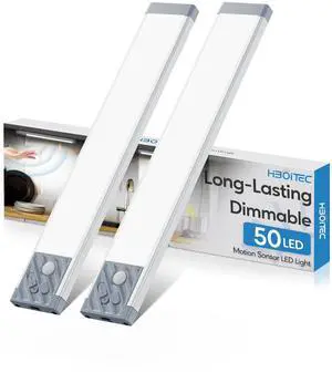 Under Cabinet Lighting Rechargeable Closet Lights Wireless Motion Sensor Light Indoor, 50 LED Dimmable Magnetic Under Counter Light for Kitchen, Pantry, 2 Pack, Cool White Light, 10 inch