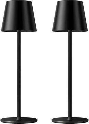 Cordless Table Lamp Rechargeable Black - KK 2 Pack 5000mAH Battery Operated Lamp for Counter, 3 Color Stepless Dimming Waterproof LED Wireless Lamp for Dining Kitchen, Outdoor Patio, Touch Control