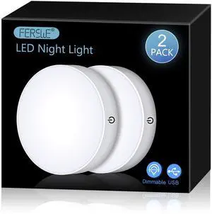 FerJAYSUING swe Rechargeable Tap Lights, Dimmable Touch Night Lights with 1000mAh Large Battery, Stick on Light for Closet, Bedroom, Bathroom and Cabinet (2 Pack)