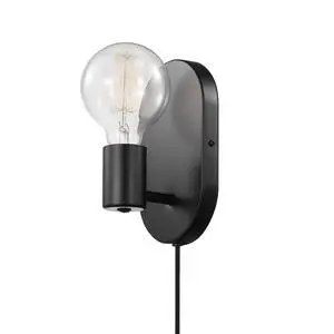x Novogratz 51488 1-Light Plug-in or Hardwire Wall Sconce, Matte Black, 6ft Fabric Covered Cord, Rocker Switch, Wall Lights for Apartment or Renters, Modern Lighting