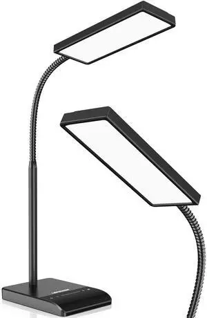 LED Desk Lamp for Home Office, Eye-Caring Desk Light with Adjustable Gooseneck, Dual Screen Computer Monitor Light with Stepless Dimming, Stepless Color Temp, Memory Function for Study, Workbench