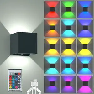 LED Wall Lights for Room Decor, 16 Colors RGB Wall Lamp, Battery Operated Wall Sconce 6000mAh, Rechargeable, Remote Control, Dimmable, Cordless Wall Light for Bedroom Living Room, Black