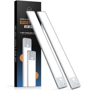 63 LED Closet Lights Motion Sensored, 2500mAh Rechargeable Under Cabinet Lighting, Dimmable & Magnetic Light Bar for Kitchen Cabinets, Hallways (2 Pack)