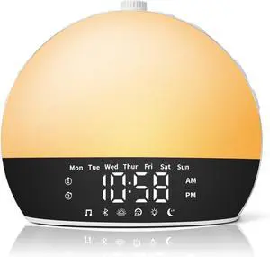 Risop Wake Up Light Sunrise Alarm Clock for Heavy Sleepers, All-in-One Smart Bedside Device with Bluetooth Speaker, FM Radio, Dual Alarm & Sleep Aid Night Light, Best Gift for Adults & Kids