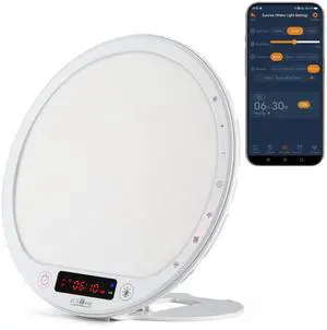 Light Therapy Lamp Sunrise Alarm Clock Wake up lamp 10000 lux UV-Free Sun lamp Bioclock Adjustment APP Control Portable No Built-in Lithium Battery