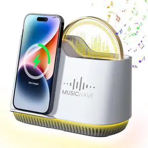 Night Lights Bluetooth Speaker,Wireless Charger 15W with Phone Holder, Touch Control Bedside Lamp Dimmable with Dynamic Colored Music Light, Gifts for Teenage Girls Boys Room Decor