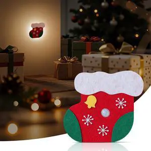 Motion Sensor Night Light, Cordless Rechargeable Stick-on Sensor Lamp with Soft Warm Light for Hallway Stairs Entryway Wall Closet Path Lighting, Stocking-Shaped