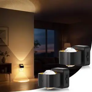 Sleeplite Night Lights Plug Into Wall, Dusk to Dawn Sensor, Ambient Lighting, Sleep Aid, Bathroom Décor, LED Lights for Bedroom, Apartment Essentials, Smart Home,76135, Amber, 2 Pack- Brand: GE