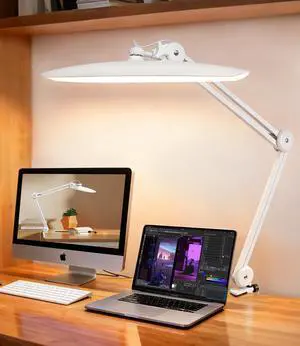 Led Desk Lamp with Clamp, Eye Caring Architect Desk Light for Home Office, Dual Screen Computer Monitor Gooseneck Adjustable Arm 20" LED Lamp, Stepless Dimming, for Nails &Salon, Reading, Workbench