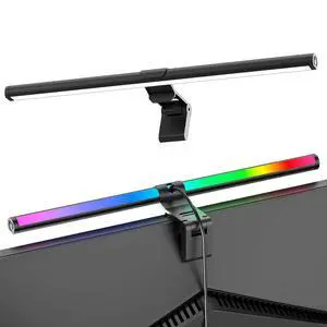 RGB Monitor Light Bar, Eye-Care Dual Light Reading Screen Lamp, 9 Modes Gaming Backlight LED Computer Lamp, 3 Colors Dimmable Frontlight, 15.75'' USB Desk Lights for Home, Office
