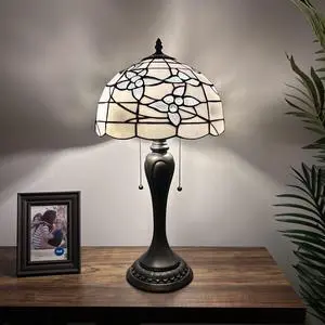ENJOY DECOR LAMPS Tiffany Style Table Lamp White Stained Glass Flowers LED Bulb Included Bedroom Living Room 12"W*12"D*19"H