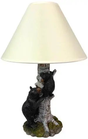 Black Bear and Cub Birch Tree Table Lamp With Shade