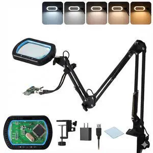 12X Magnifying Glass with Light and Clamp, Ultra Long 3-Section Arm, 5.3×3.2" Glass Lens, 5000LM 5 Colors Temperatures & 10 Brightness, Large Magnifying Lamp for Electronics, Crafting, Hobby
