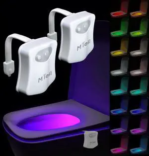 Toilet Night Light 2Pack Motion Sensor Activated LED Light 8 Colors Changing Toilet Bowl Illuminate Nightlight for Bathroom Battery Not Included Perfect with Water Faucet Light