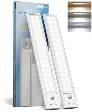 Under Cabinet Lighting Wireless, 2 Pack Under Cabinet Lights, Rechargeable Motion Sensor Light Indoor, 3 Color Temps, 5 Levels Dimmable Magnetic Closet Lights, Under Counter Lights for Kitchen, Stairs