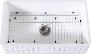 Gourmetier KGKFA301810SQ Farmhouse Single Bowl Kitchen Sink with Strainer & Grid, Matte White/Brushed