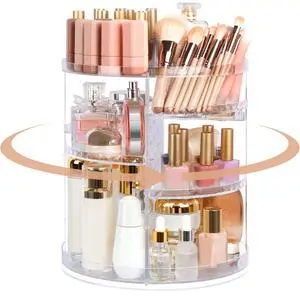 Makeup Organizer Rotating Large Capacity, 360 Makeup Carousel with Brush Compartment, Clear Skincare Cosmetic Spinning Organizer with 7 Layers for Countertop Vanity Bathroom Bedroom