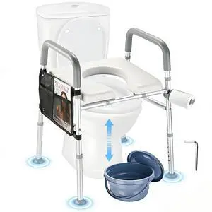 Yescom Raised Toilet Seat Riser Adjustable Bedside Commode with Handles 375 lb for Seniors Disabled