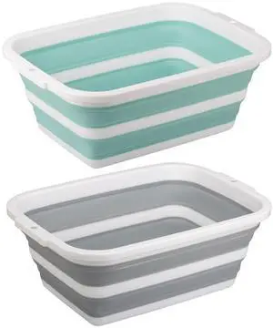 2 Pack Collapsible Wash Basin Set, Foldable Dish Tub, Small Medium Portable Sink for Kitchen, Camping, RV, Baby Bottles, Laundry, Plastic Washbasin -Pink