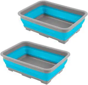 2 Pack Collapsible Bucket with 2.25 Gal / 8.5L Each, Plastic Tub, Portable Wash Basin for Home and Garden, Foldable Camp Sink with Upgrade Reinforced Hard Plastic Rim