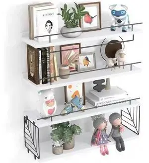 Fixwal 3+1 Tier Over Toilet Bathroom Shelve w/ Towel Bar Rustic Wall Decor White