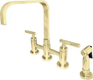 Kingston Brass KS8252CMLBS Manhattan 2-Handle Kitchen Faucet with Brass Side Sprayer, Polished Brass