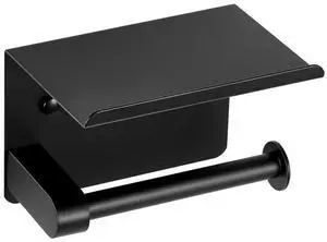 Toilet Paper Holder with Shelf, Fits Mega Rolls Size, Stainless Steel Rustproof Material, Wall Mounted with Screws and Double-Sided Tape, Toilet Roll Tissue Holder for Bathroom, Matte Black