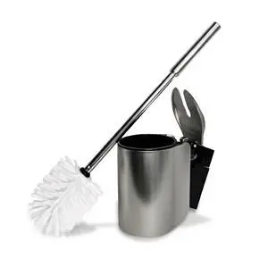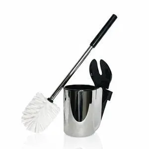 Toilet Brush Set - Wall-Mounted Toilet Brush with Covered Holder, Nickel Finish and Black Handle (Toilet Brush with Holder)