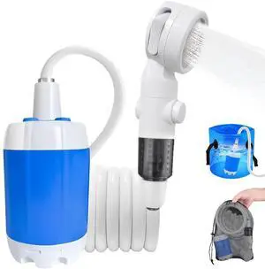 Portable Shower for Camping, 6000mAh Rechargeable Camping Shower with 5.3 Gallons Foldable Bucket, Filtered Shower Head, Outdoor Camp Shower Pump for Hiking, RV, Traveling, Car Washing, Pet Bath