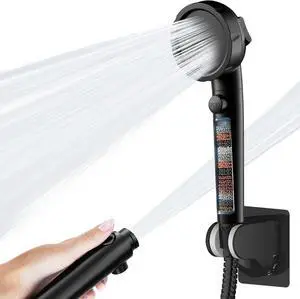 HYLER Shower Head High Pressure Handheld with 15-Stage Filter (Extra Filter, 6ft Hose, 2.5 GPM) - 8 Spray and 1 Focused Jet Mode, Water Saving Showerhead, Black Matte