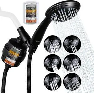 G-Promise Luxury Filtered Handheld Shower Head, 6 setting with Effective Filter of 2 Cartridges, Adjustable Metal Bracket, Extra Long Hose (Matte Black)