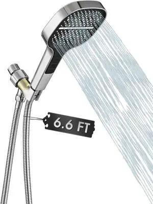 Handheld Shower Head with Extra Long Hose, 8 Setting Square Detachable Hand Held Spray with Upgrade Button & On Off Switch, 79" Hose - Chrome