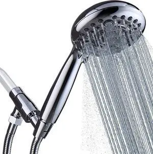 Shower Head Handheld with All Metal Showerhead Holder and Extra Long Hose 6 ft. 10 Spray Mode High Pressure Built-in Power Wash Hand Held Showerhead, Handheld Shower sprayer Premium Chrome 2.5 GPM