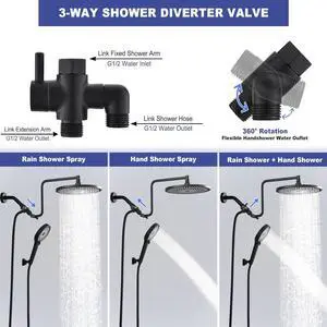 Lordear Matte Black 7-Function Dual Shower Head With Handheld Shower System