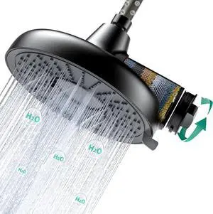 High Pressure Filtered Shower Head Set, 6 Rain Shower Filter for Hard Water, Universal Round Showerhead 20 Stage Filtration Removes Impurities for Rejuvenated Skin by Eolax, Matte Black