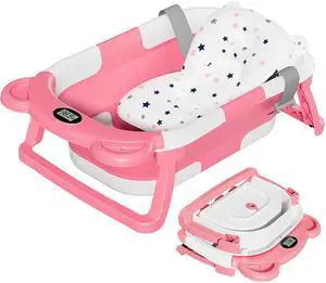 TPN Collapsible Baby Bathtub, Baby Bath Tub with Soft Cushion & Real-Time Thermometer, Baby Bathtub Infant to Toddler Tub (0-36 Months), Portable Newborn Travel Bath tub