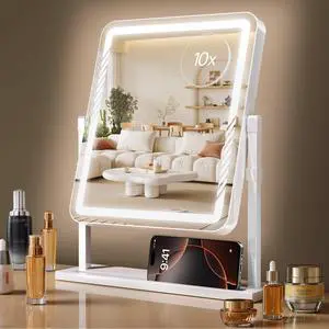 Vanity Mirror with Lights 22"x18", Lighted Makeup Mirror with 10X Magnification, Smart Touch 3 Colors Dimmable, 360° Rotation, Women Gift, Dresser Mount, Bathroom (White)