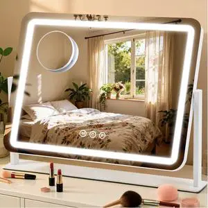 LED Vanity Mirror with Lights, Makeup Mirror with 3 Color Modes, Smart Touch Control, 360° Rotation for Desk,13.2" L x 11.2" W