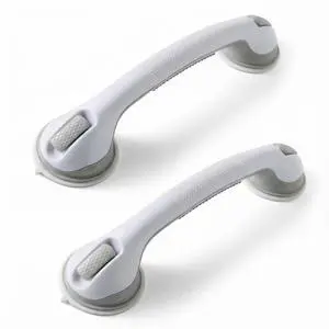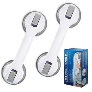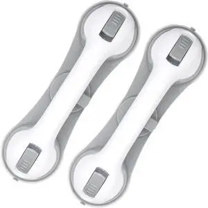 12-Inch Suction Grab Bars for Bathtubs and Showers - 2 Pack Heavy-Duty Bathroom Safety Handles for Seniors and Shower Chairs (Gray/White) Grab Bars can be attached to Tiles, Glass & Hard Plastic ONLY.