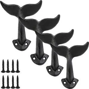 4PCS Whale Tail Cast Iron Wall Hook