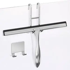 Buddy Bathroom Squeegee for Shower, Mirror, Window - Adhesive Storage Hook Included